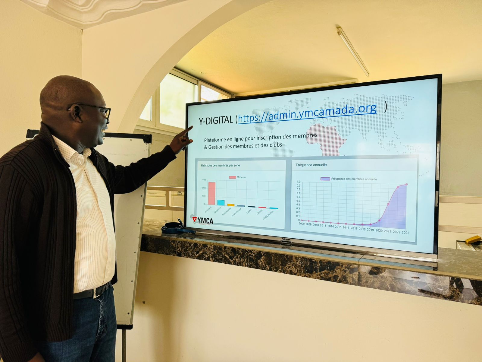 One particular innovation that caught Dr. Coly’s attention was the Y-DIGITAL (c) platform, an online tool that facilitates club and member registration and management. Recognizing its potential, he emphasized the need to scale this tool across all African YMCAs, considering it a major advancement in member management. He even had the opportunity to personally register on the platform as a member of the Fort-Dauphin branch.